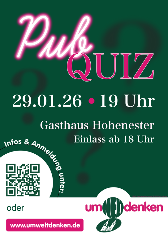 | Aufgrund der begrenzten Teilnehmerzahl ist eine Voranmeldung der Quiz-Gruppen (3 - 4 Personen) erforderlich |